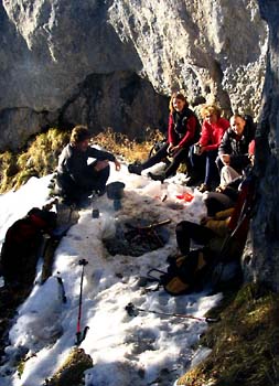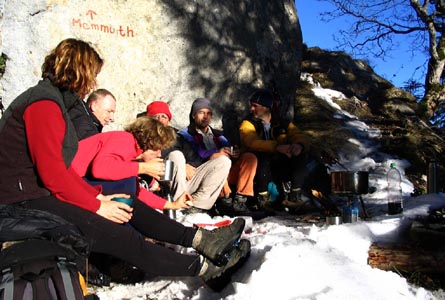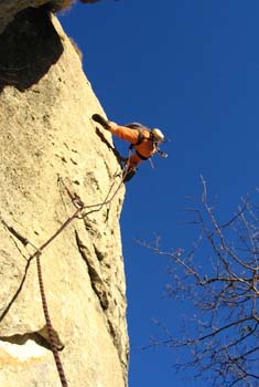 Da einige von den Anwesenden schön ganz schön vom Klettern entwöhnt waren, schinden uns die Roßberg Spezialklettereien schnell. Selbst der zur Stärkung eingenommen Glühwein bringt die verbrauchten Kräfte nicht mehr zurück. (hab im Mamouth einen Sack hängen seitdem, früher ging das immer noch als 8te Tour beim 10 vor viere Licht, aber die Zeiten sind vorbei).