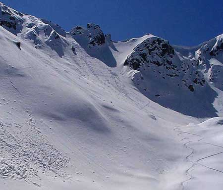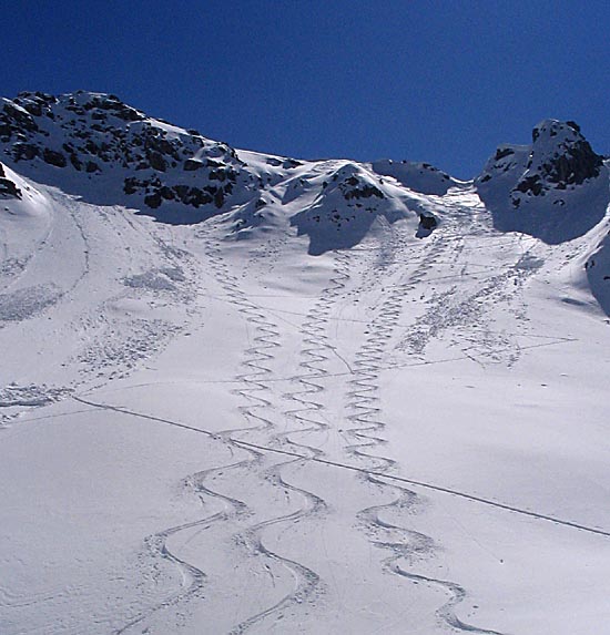 nicht ganz übler Pulver am Gipfelhang der Landschaftsspitze erforderte mehrfache Abfahrt