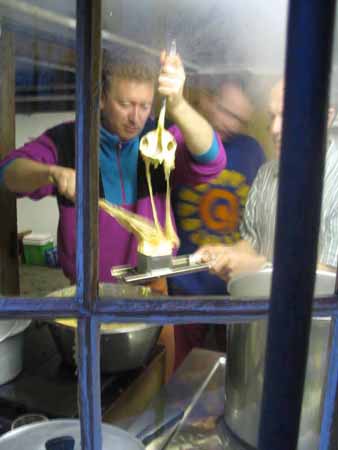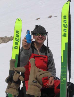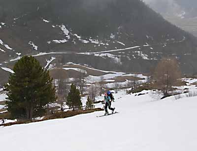 Bei der Abfahrt - im oberen Teil erstaunlich gut tragfähig - konnte Miche die Lawinenschaufel einer völlig neuen Benutzung zuführen, anders hätte er die abngesumpften Ski wohl nicht mehr aus der Pampe befreien können.