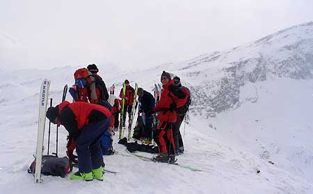 Abgeschlossen wurde der Tag - nach Cappukochen im Lotsch - durch: - eine mittlere Refellingeinheit im dichten Schneetreiben (Wolfi) - Calanda- Kampftrinken an der Bar vom Turrahaus (die üblichen Verdächtigen) - Siesta im Lager(der Rest)